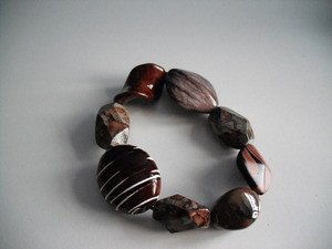 Stretchy bracelet of brown tone beads.