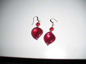 Rose vermillion Venetian glass, vermeil wires and accents. 1.5 inches